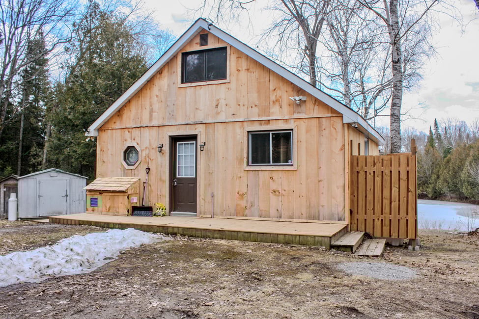 This quaint off-grid cabin in the woods overlooks its own private pond and surrounding acreage. With just a little over 26 acres you have ample room to explore and reconnect with nature. The private pond is visited by a variety of animals in the area and on our most recent visit had a couple of ducks relaxing in the chilly waters.